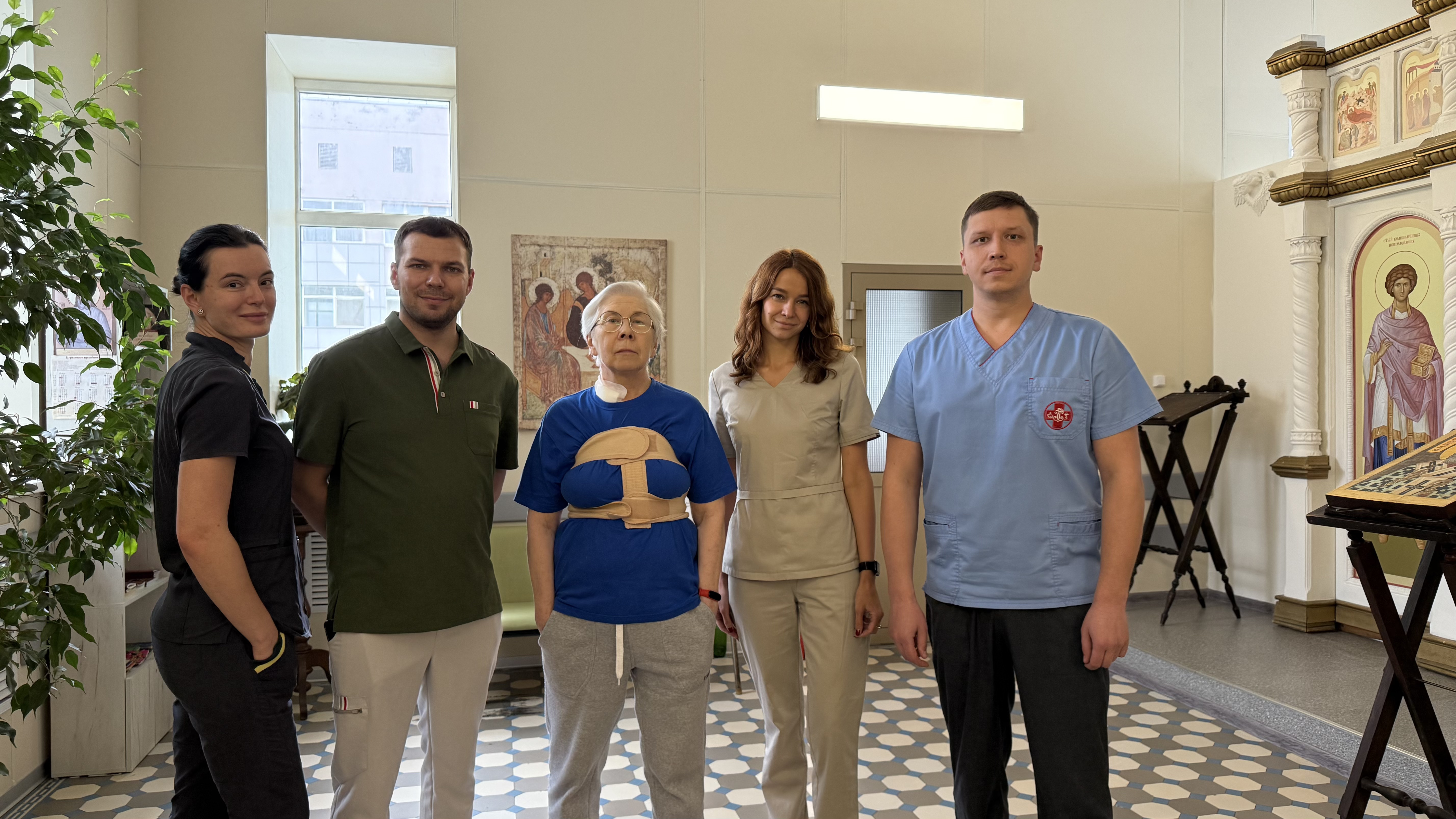 На главную Пресс-центр Новости Врачи пермского Кардиодиспансера спасли жизнь пациентке с огромной опухолью в сердце Врачи пермского Кардиодиспансера спасли жизнь пациентке с огромной опухолью в сердце 18.09.2025 Пациентка 68 лет за последние полгода неоднократно попадала в больницу — шесть раз — с подозрением на инсульт. При этом она перенесла временный паралич рук и ног, однако впоследствии функции были полностью восстановлены. На очередном приеме у терапевта в ГКП №4 у пациентки выявили подозрение на новообразование сердца. Врачи, столкнувшись с редким случаем, оперативно связались с коллегами из Кардиодиспансера для консультации и принятия совместного решения о госпитализации 68-летней пермячки в клинику для проведения сложного кардиохирургического лечения. Специалисты профильного учреждения взяли на себя задачу выполнения непростой операции. Врачи Кардиодиспансера провели углубленное обследование методом экспертной эхокардиографии и обнаружили крупную подвижную опухоль левого предсердия, которая при сокращении сердца проникала в полость левого желудочка и мешала нормальному кровотоку. Пациентка незамедлительно была направлена к кардиохирургам для оперативного удаления новообразования. «Мы удалили опухоль размером около 5 см из полости левых камер сердца. Опухоль была типичной миксомой — наиболее частое доброкачественное образование сердечной мышцы. Она имеет желеобразную структуру и легко фрагментируется. Именно из-за фрагментации частички опухоли в течение полугода с током крови попадали в мозг пациентки, вызывая неврологическую симптоматику, типичную для кардиоэмболического инсульта», — рассказал заведующий кардиохирургическим отделением Кардиодиспансера, к.м.н. Алексей Вронский. Операция длилась два часа и прошла успешно. После вмешательства одиннадцать дней пациентка находилась под чутким наблюдением врача-кардиолога. Сейчас женщина чувствует себя хорошо, ей даны четкие рекомендации по реабилитации. «Миксома сердца — редкая патология: заболеваемость составляет один случай на миллион человек в год. Важно быстро диагностировать проблему и вовремя выполнить операцию, ведь без лечения опухоль может привести к инсульту, инфаркту, острой сердечной недостаточности и даже смерти. Благодаря взаимодействию с коллегами из амбулаторного звена пациентку оперативно направили к нашим специалистам, которые справились с задачей в короткие сроки и успешно провели лечение», — подытожил главный врач Кардиодиспансера, к.м.н. Кирилл Прохоров. Напомним, возможности Кардиодиспансера позволяют оказывать полный комплекс диагностики и лечения пациентов с любыми заболеваниями сердечно-сосудистой системы на амбулаторном, стационарном этапах, сохраняя преемственность при диспансерном наблюдении и реабилитации. Эти задачи закреплены в национальном проекте «Продолжительная и активная жизнь». На фото - операционная бригада с пациенткой: врач-анестезиолог-реаниматолог Наталия Иванцева, заведующий кардиохирургическим отделением, к.м.н., врач-сердечно-сосудистый хирург Алексей Вронский, врач-кардиолог Софья Богданова, врач-сердечно-сосудистый хирург Роман Чебыкин. Назад