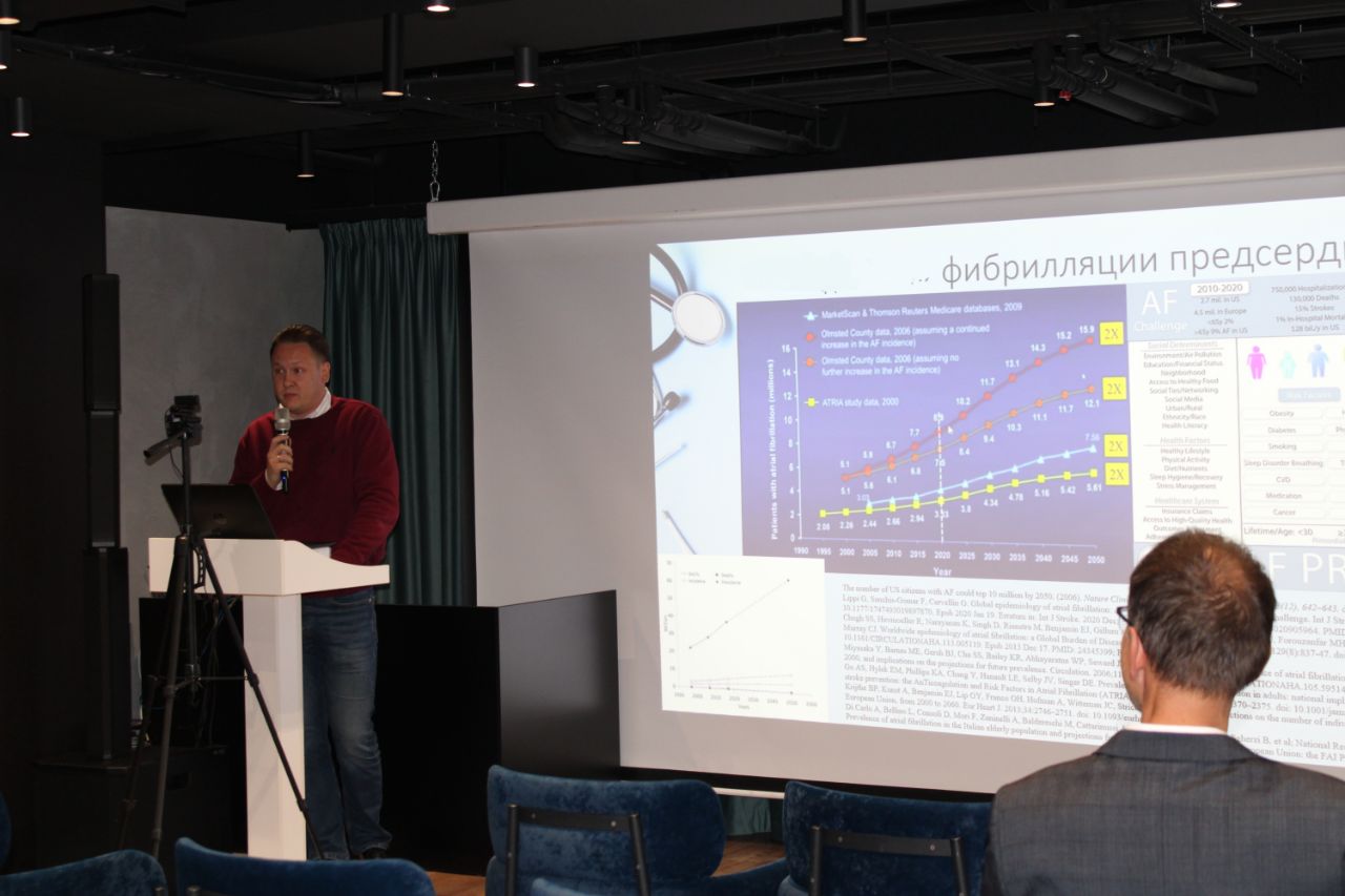 На главную Пресс-центр Новости Специалисты Кардиодиспансера приняли участие в работе ежегодной научно-практической конференции Кардиомаяк Специалисты Кардиодиспансера приняли участие в работе ежегодной научно-практической конференции Кардиомаяк 22.09.2025 На минувшей неделе в Перми состоялась ежегодная научно-практическая конференция Кардиомаяк «Пермский край. Край твоего сердца», ставшая брендом здравоохранения Прикамья. Уже восьмой год подряд событие собирает представителей профессиональной среды – врачей-кардиологов, терапевтов, врачей общей практики, специалистов смежных направлений медицины, студентов и ординаторов. Конференция традиционно объединяет участников из Пермского края и других городов России, в том числе врачей из Москвы, Санкт-Петербурга, Екатеринбурга. За годы работы Кардиомаяк стал уникальной площадкой для обмена передовыми тенденциями и инновационными методиками оказания медицинской помощи пациентам с сердечно-сосудистыми заболеваниями. Конференция организована при поддержке Министерства здравоохранения Пермского края. В этом году мероприятие прошло в гибридном формате: первый день – в режиме онлайн, что позволило врачам на местах прослушать интересные для себя лекции, второй день – непосредственное участие гостей и выступления специалистов. «Мы пошли на небольшой эксперимент и провели конференцию сразу в двух залах, что позволило участникам самостоятельно выбирать наиболее интересную для себя тему. Традиционно Кардиомаяк проходит весной и осенью, в этот раз прошла осенняя сессия. Она предваряет Российский национальный конгресс кардиологов, который стартует 25 сентября в Казани. Уверен, что информация, озвученная за дни работы конференции практикующими специалистами, позволит существенно увеличить качество ведения пациентов, в том числе улучшить диагностику хронических и острых состояний», - отметил идеолог и создатель Кардиомаяка, главный внештатный кардиолог Министерства здравоохранения Пермского края, к.м.н. Григорий Спасенков. Главный внештатный терапевт Министерства здравоохранения Пермского края, д.м.н. Наталья Корягина подчеркнула, что помимо подобных встреч в краевой столице, проводятся и выездные мероприятия. «В октябре планируем выездное заседание в Кунгуре с приглашением специалистов из близлежащих больниц, а также в Березниках, чтобы мы могли донести актуальную информацию о болезнях системы кровообращения и до врачей больниц севера региона. Будут представлены результаты работы службы оказания помощи пациентам с болезнями системы кровообращения, рекомендованы новые механизмы работы, выступят главные внештатные специалисты», - отметила она. В работе Кардиомаяка, инициированного специалистами пермского Кардиодиспансера, по традиции приняли участие специалисты учреждения. Заведующий кардиологическим отделением №2 к.м.н. Григорий Спасенков доложил о последних результатах работы регистра пациентов с ХСН и рассказал о современном подходе ведения коморбидных пациентов. Руководитель центра диагностики и лечения легочной артериальной гипертензии (ЛАГ) и сложных нарушений липидного обмена Наталья Бизяева рассказала о клиническом опыте ведения пациентов с ЛАГ в Пермском крае, а также сообщила о результатах работы узкоспециализированных кардиологических
