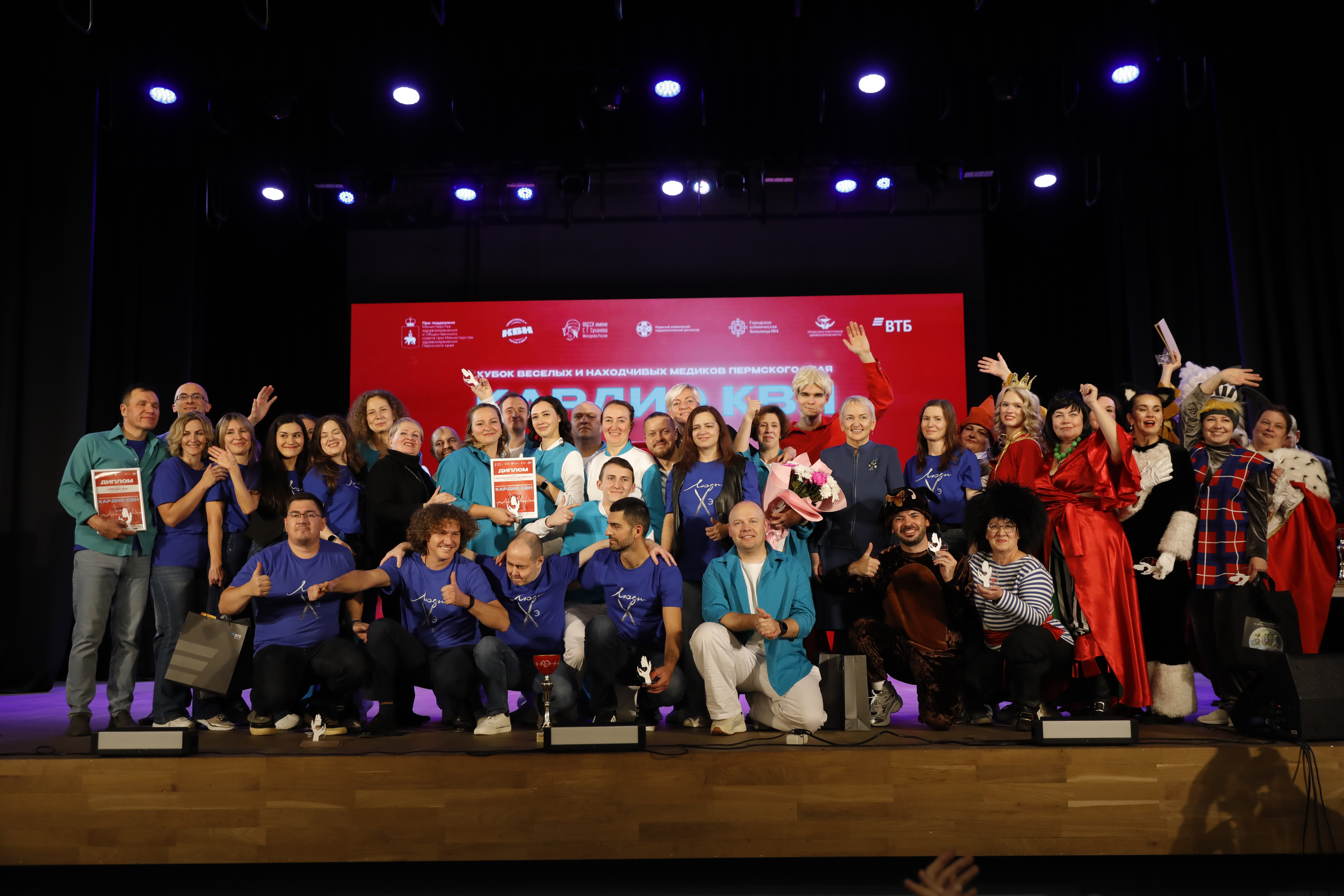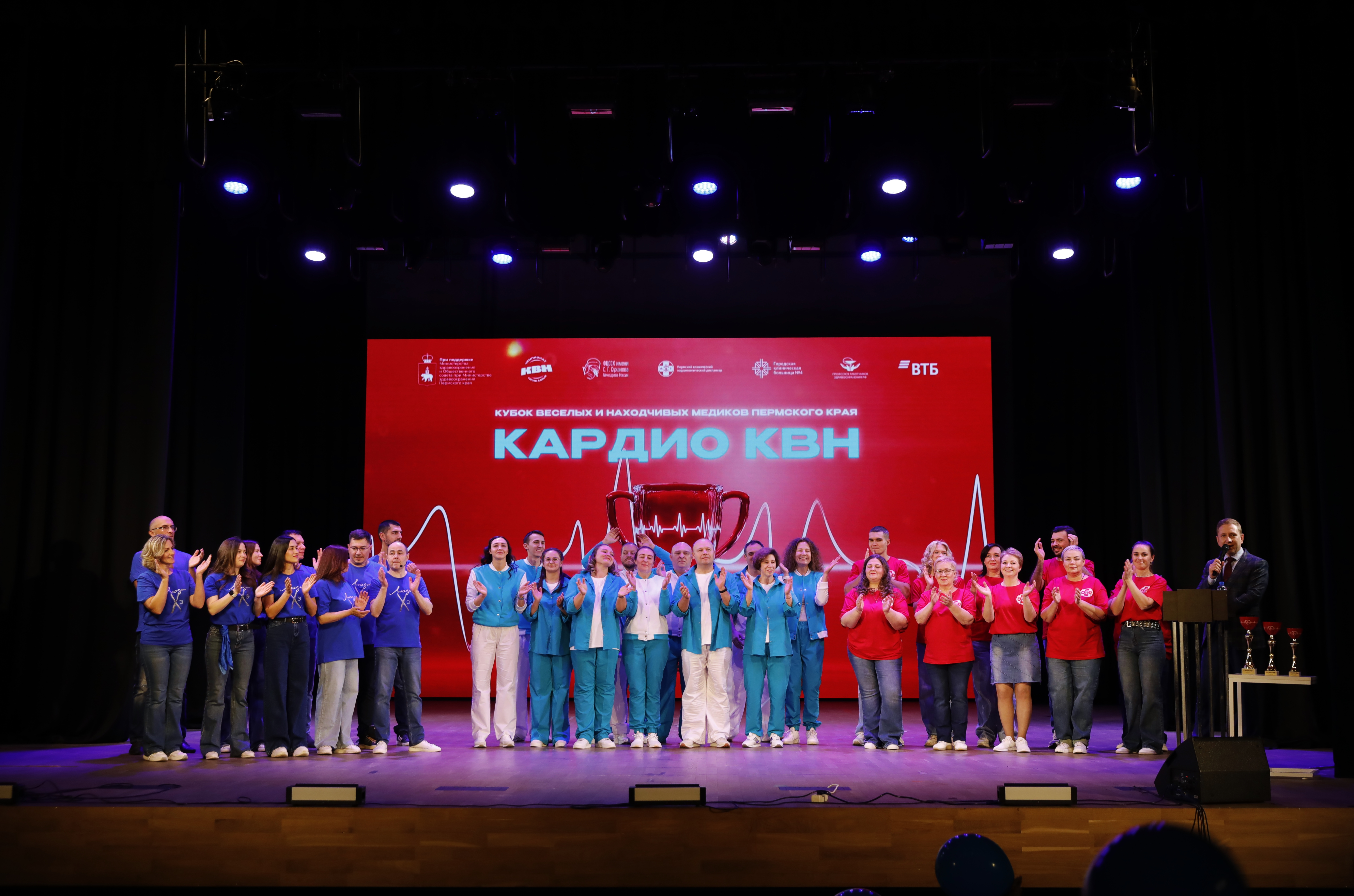 На главную Пресс-центр Новости В Перми впервые прошел «Кубок Кардио КВН» В Перми впервые прошел «Кубок Кардио КВН» 30.09.2025 29 сентября, во Всемирный день сердца, в краевой столице состоялось уникальное юмористическое событие в медицинской среде — «Кубок Кардио КВН». «Медицина с улыбкой!» — именно так звучит девиз первого кубка юмора, собравшего одних из самых сильных команд врачей и медицинского персонала. В Доме Молодёжи сразу три команды из лечебных учреждений Перми продемонстрировали оригинальность и комедийное мастерство: - «Здоровые кадры» (Клинический кардиологический диспансер); - «Люди Хэ» (Федеральный центр сердечно-сосудистой хирургии им. С.Г. Суханова); - «Великолепная четверка» (Городская клиническая больница №4). «Врачи, оказывающие помощь при острых сосудистых ситуациях – это люди очень серьезные, люди, которые работают круглосуточно, те, кто постоянно находится «на посту». Однако, эта игра раскрыла их с другой стороны – их таланты, желание рассмешить других и радоваться жизни, которую они постоянно оберегают. Министерство здравоохранения Пермского края всегда приветствует такие инициативы и безусловно будет поддерживать эту традицию в дальнейшем», - поделилась министр здравоохранения Пермского края Анастасия Крутень. В этот вечер зрителей ждали яркие и увлекательные этапы, каждый из которых раскрывал креативность и артистизм участников: конкурсы визитка, ситуация с жюри, музыкальное домашнее задание. В конкурсе импровизации члены жюри предложили командам ряд неожиданных ситуаций. Этот этап стал настоящим испытанием для команд, однако участники успешно справились с заданиями, продемонстрировав своё чувство юмора, остроту ума и находчивость. «Мы неоднократно проводили подобные мероприятия на уровне нашего учреждения, но в этот раз вышли с инициативой к коллегам из ФЦССХ и ГКБ №4, чтобы сразиться в КВН. И сделать это на высоком профессиональном уровне. Надеемся, что в дальнейшем это станет доброй традицией», - рассказал главный врач Кардиодиспансера, к.м.н. Кирилл Прохоров. Поддержку каждой команде оказывали активные группы болельщиков, чьи громкие аплодисменты и энтузиазм создавали атмосферу настоящего праздника. «Без поддержки наших болельщиков было бы гораздо сложнее показать всё, на что мы способны. Их энергия заряжала нас на сцене, вдохновляла на смелость и уверенность в каждом выступлении. Мы благодарны каждому, кто пришёл поддержать нашу команду, вместе мы смогли сделать этот вечер ярким и запоминающимся!» - поблагодарил капитан команды «Здоровые кадры» Григорий Спасенков. Жюри оказалось в непростой ситуации: каждая команда продемонстрировала свой стиль и искрометный юмор, сделать выбор в пользу одного из участников оказалось непросто. Решением председателя жюри, президента Чемпионата КВН Прикамья, депутата Государственной думы РФ Ирины Ивенских кубки получили все три команды, ставшие победителями первой игры. Организаторы мероприятия уверены, что «Кубок Кардио КВН» станет традиционным событием в культурной жизни медицинского сообщества и ещё не раз подарит массу положительных эмоций. Напомним, проведение Первой игры на Кубок «Кардио КВН» приурочено ко Всемирному дню сердца и осуществлялось под патронажем Министерства здравоохранения Пермского края, Чемпионата КВН Прикамья и Обще